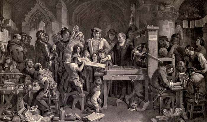 In 1476, William Caxton set up the first English printing press. The majority of the population at this time were illiterate and relied on town criers for their news briefing.